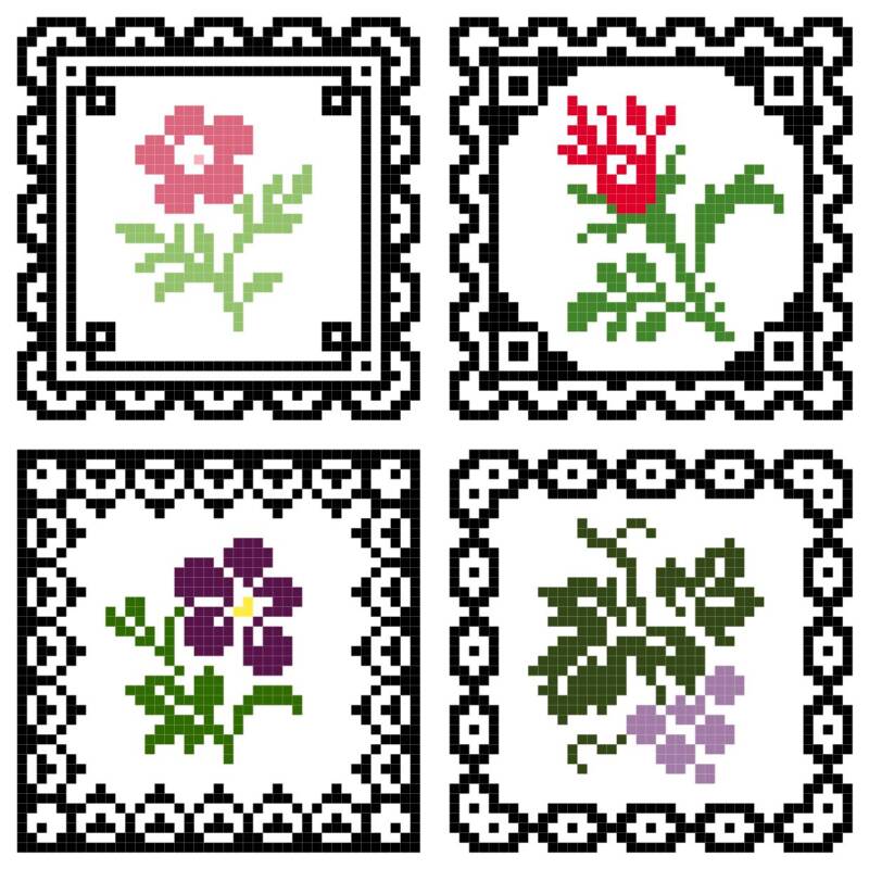 A small collection of monochrome patterns perfect for cross stitch, bead work and filet crochet.