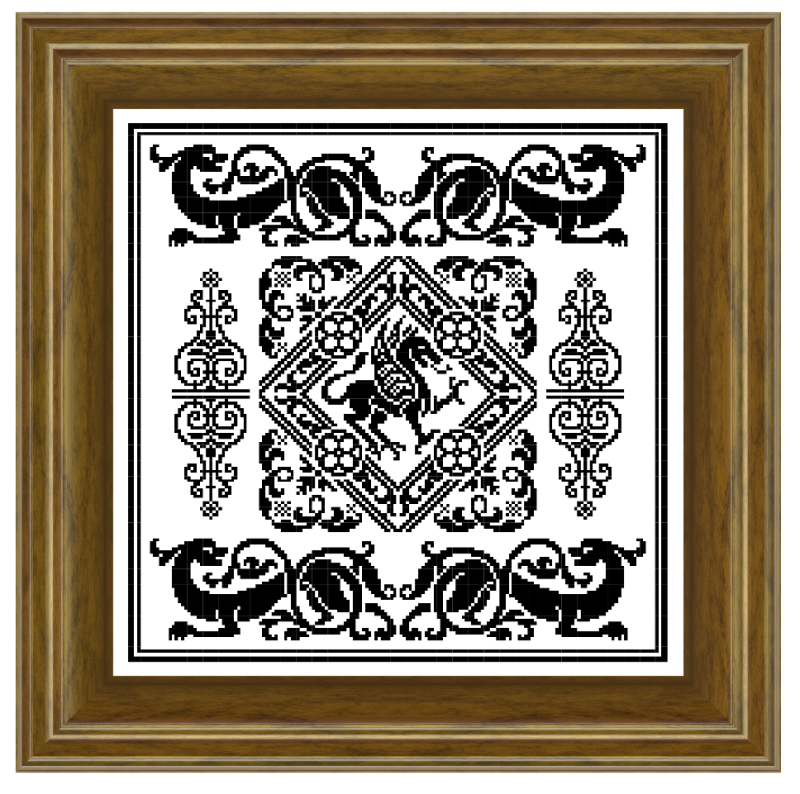 An impressive dragon, perfect for cross stitch, and filet crochet.