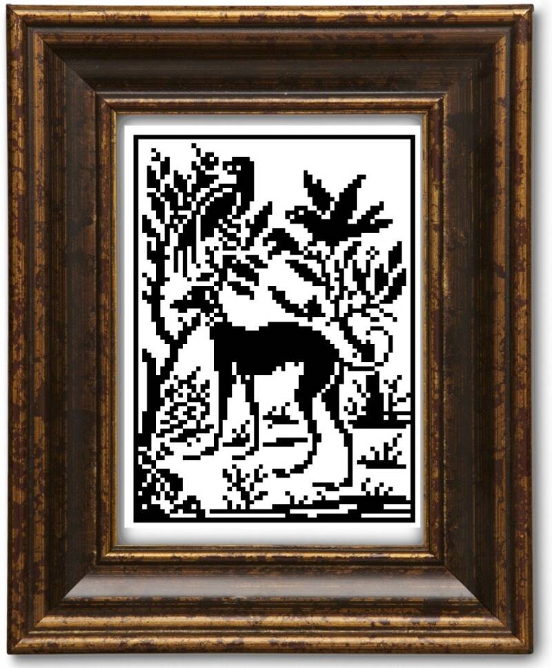 This beautiful little embroidery pattern of a whippet and two parrots, is a replica of an antique lacis, or filet crochet pattern.