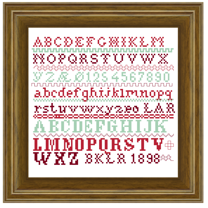 This pattern is a faithful replica of an antique sampler stitched in 1899 by Marie Agenon. What is very interesting about this sampler is that Marie stitched a similar one in 1888, both were worked in red threads and feature very similar alphabets and motifs.
